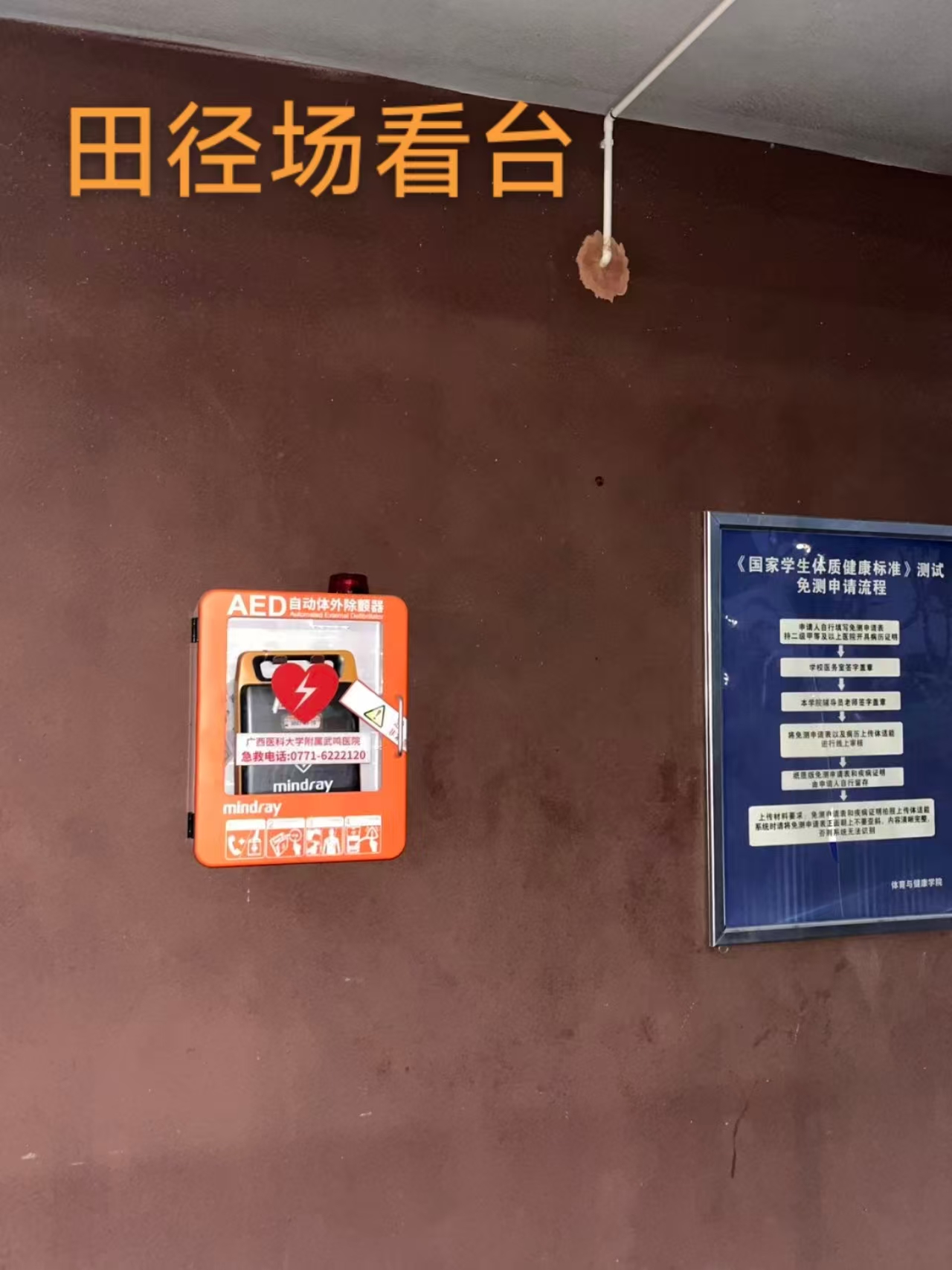 我校根据《全国学校急救教育试点工作指导手册》,在校本部、武鸣校区、玉林校区安装了35台AED设备,分布于教学区、体育场(馆)、学生宿舍、食堂、办公楼、离退处、家属区等人员密集场所,为校园内部及周边人群生命安全提供了应急保障。