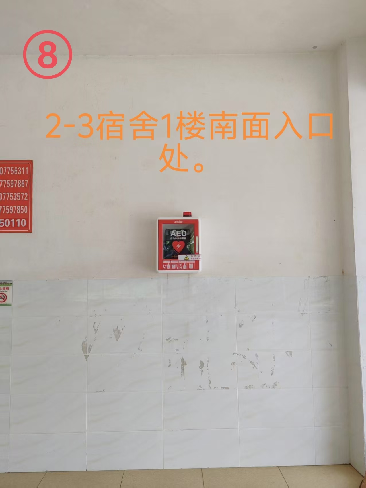 我校根据《全国学校急救教育试点工作指导手册》,在校本部、武鸣校区、玉林校区安装了35台AED设备,分布于教学区、体育场(馆)、学生宿舍、食堂、办公楼、离退处、家属区等人员密集场所,为校园内部及周边人群生命安全提供了应急保障。